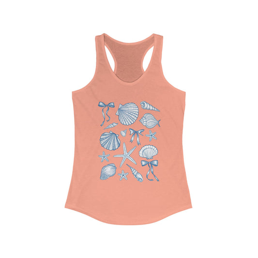 Coquette Shirt Women's Tank Top, Beach Seashell Racerback Shirt, Summer Sleeveless Top, Vacation Tank, Casual Beachwear