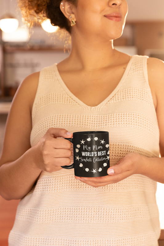 Funny Mom Gifts Black Coffee Mug Birthday My Mom The Worlds Best Seashell Collector Funny Job Present for Beach Lovers
