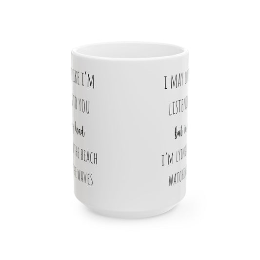 Funny Beach Coffee Mug Look Like I'm Listening But On Beach Watching Waves