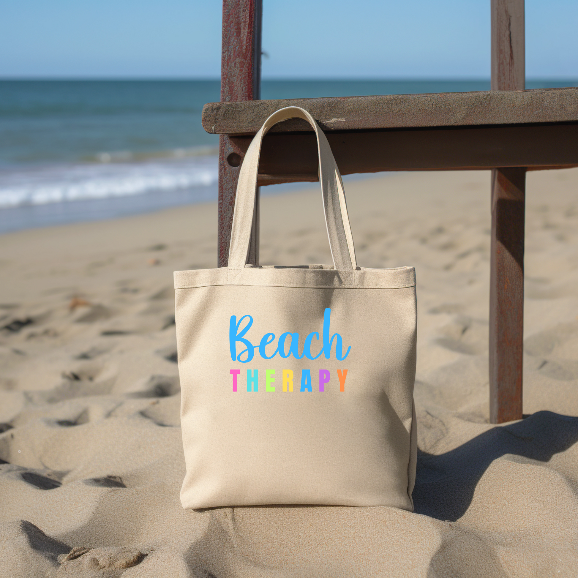 Embroidered Beach Bag Organic Cotton Beach Therapy Eco Tote Bag