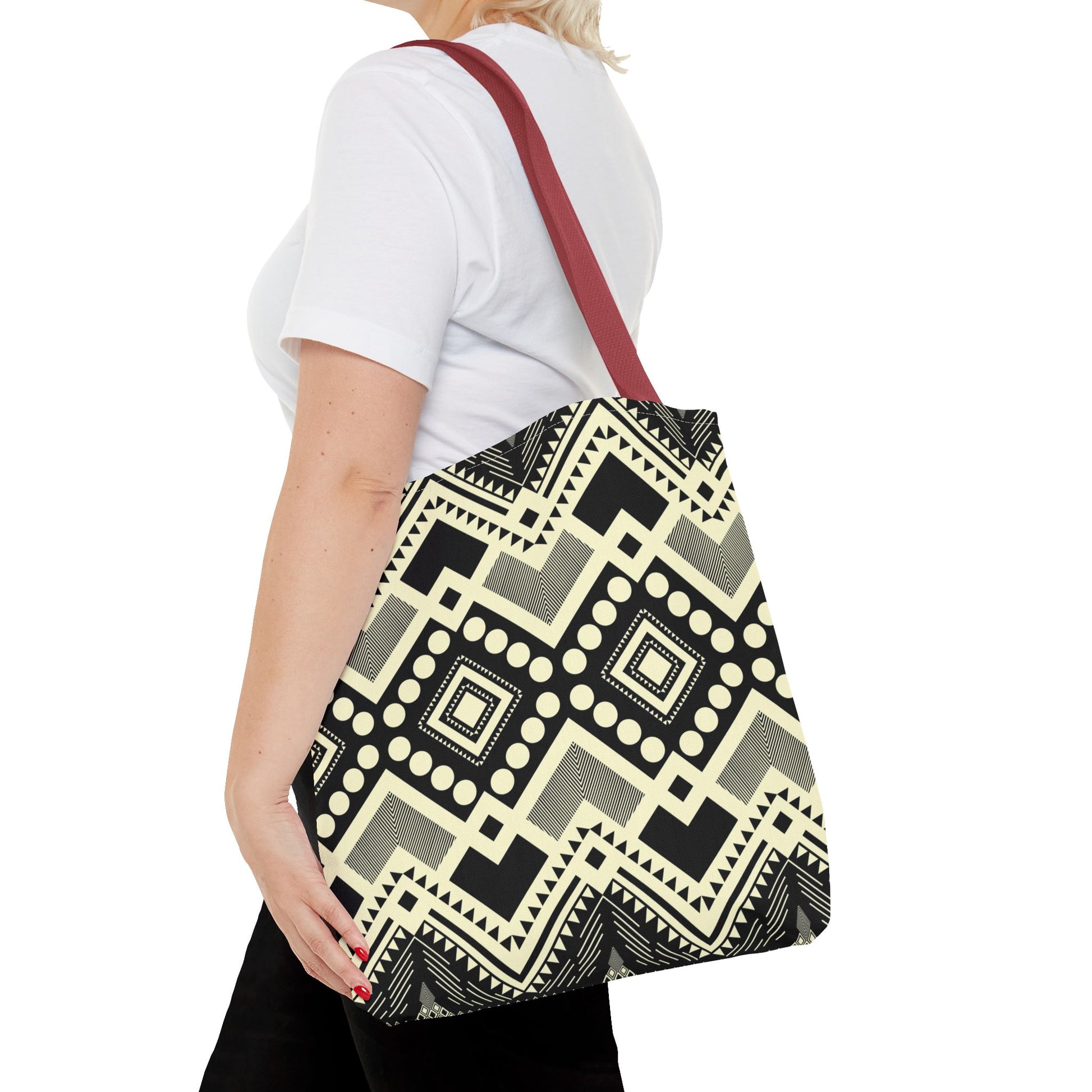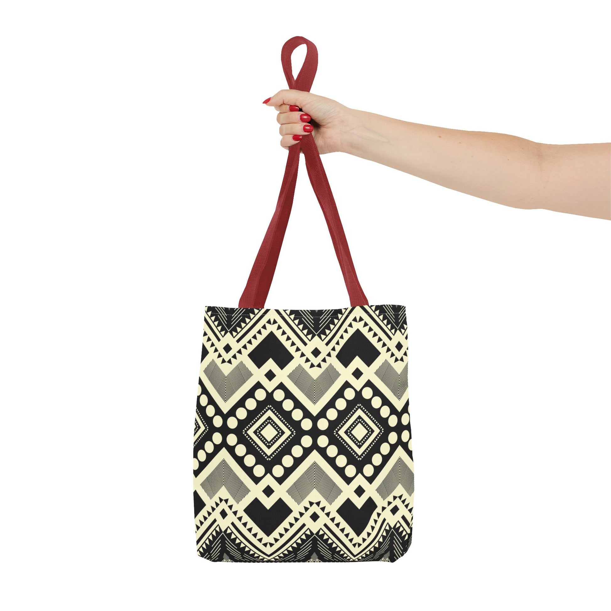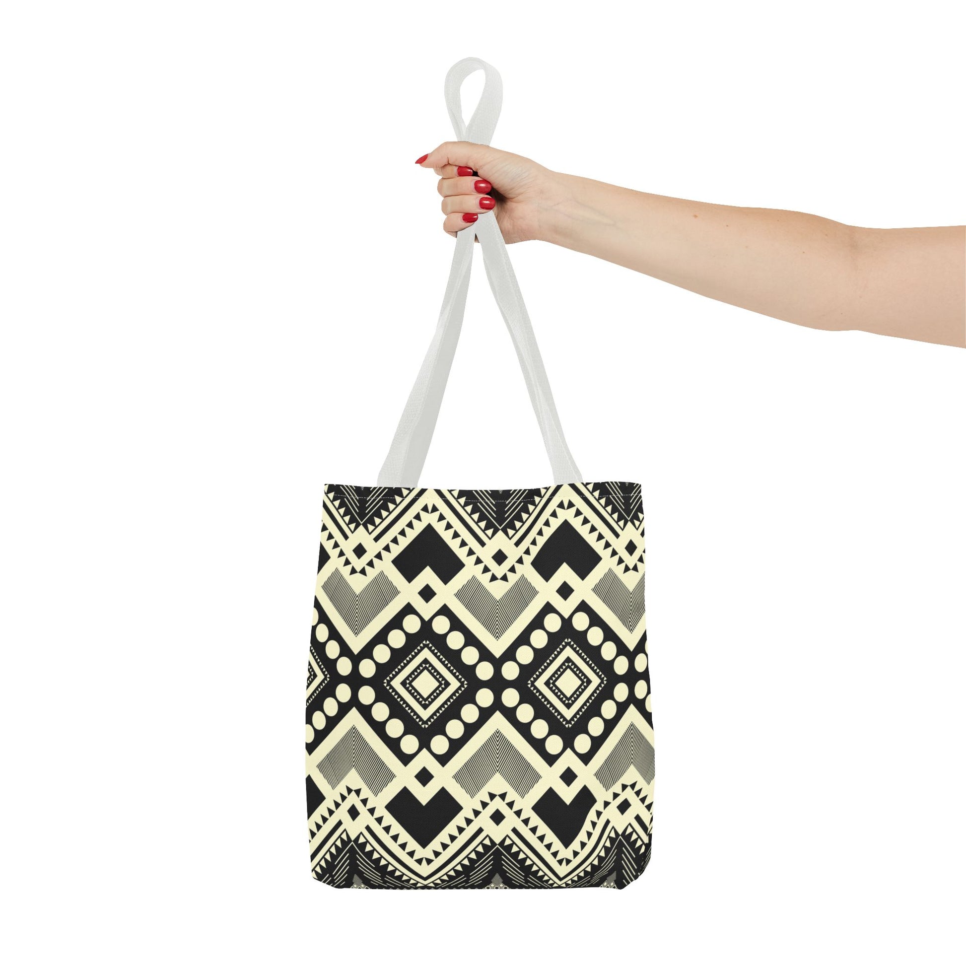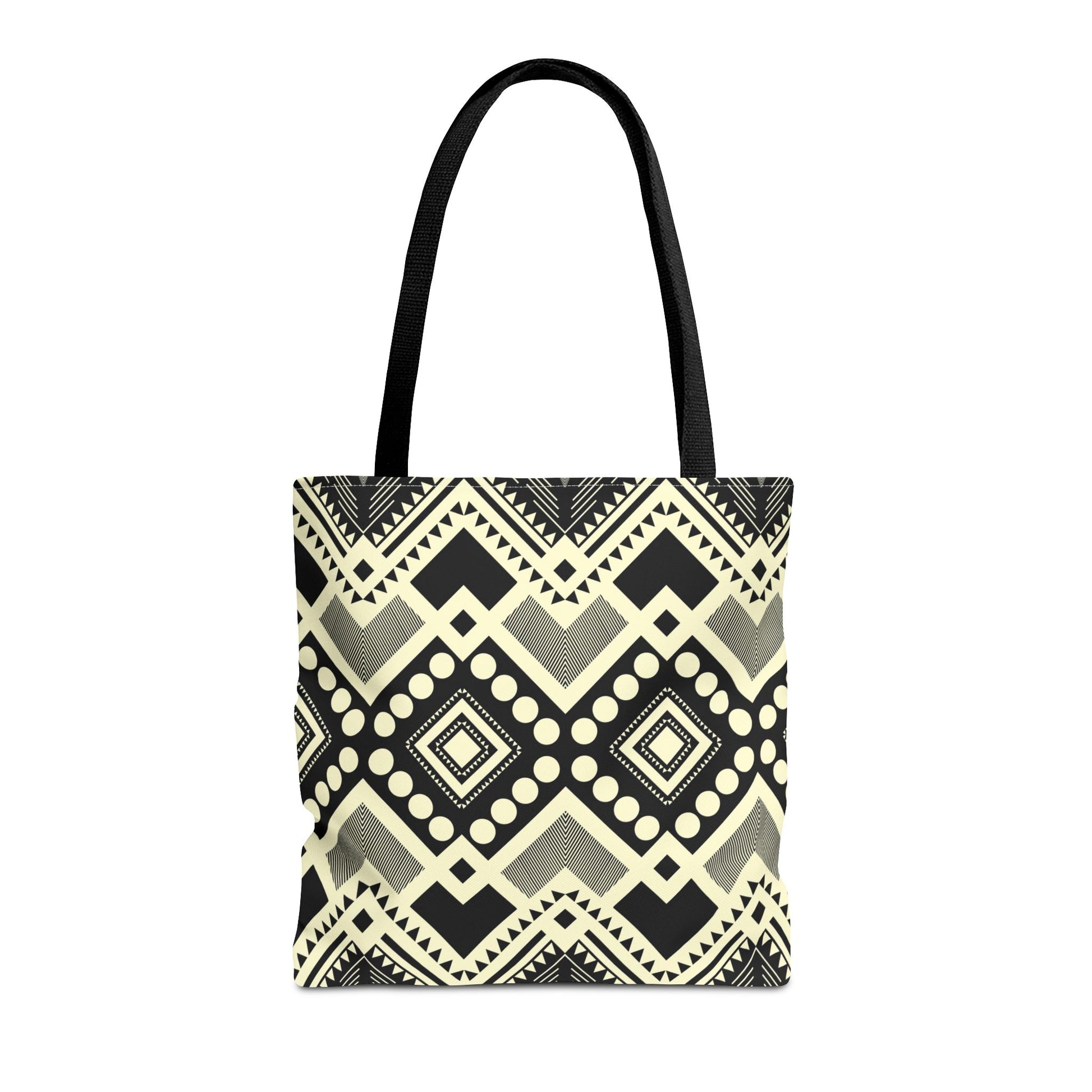 This Ethnic Black White Everyday Tote Bag offers a stylish and durable option for daily use. The black and white design gives off a chic and timeless vibe, making it perfect for fashion-conscious individuals. It can easily fit into anyone's wardrobe and is relevant for everyday use, shopping trips, beach outings, and picnics.