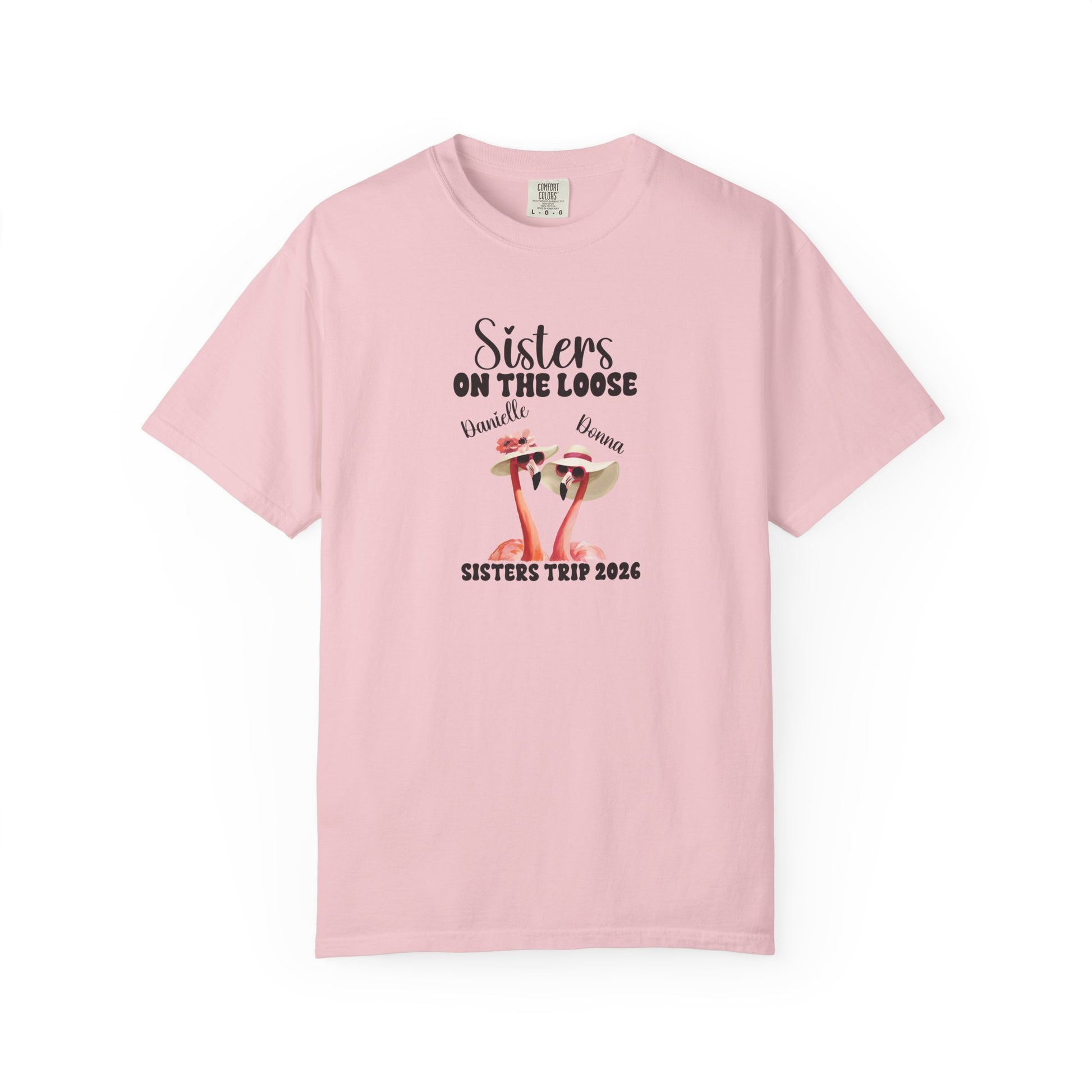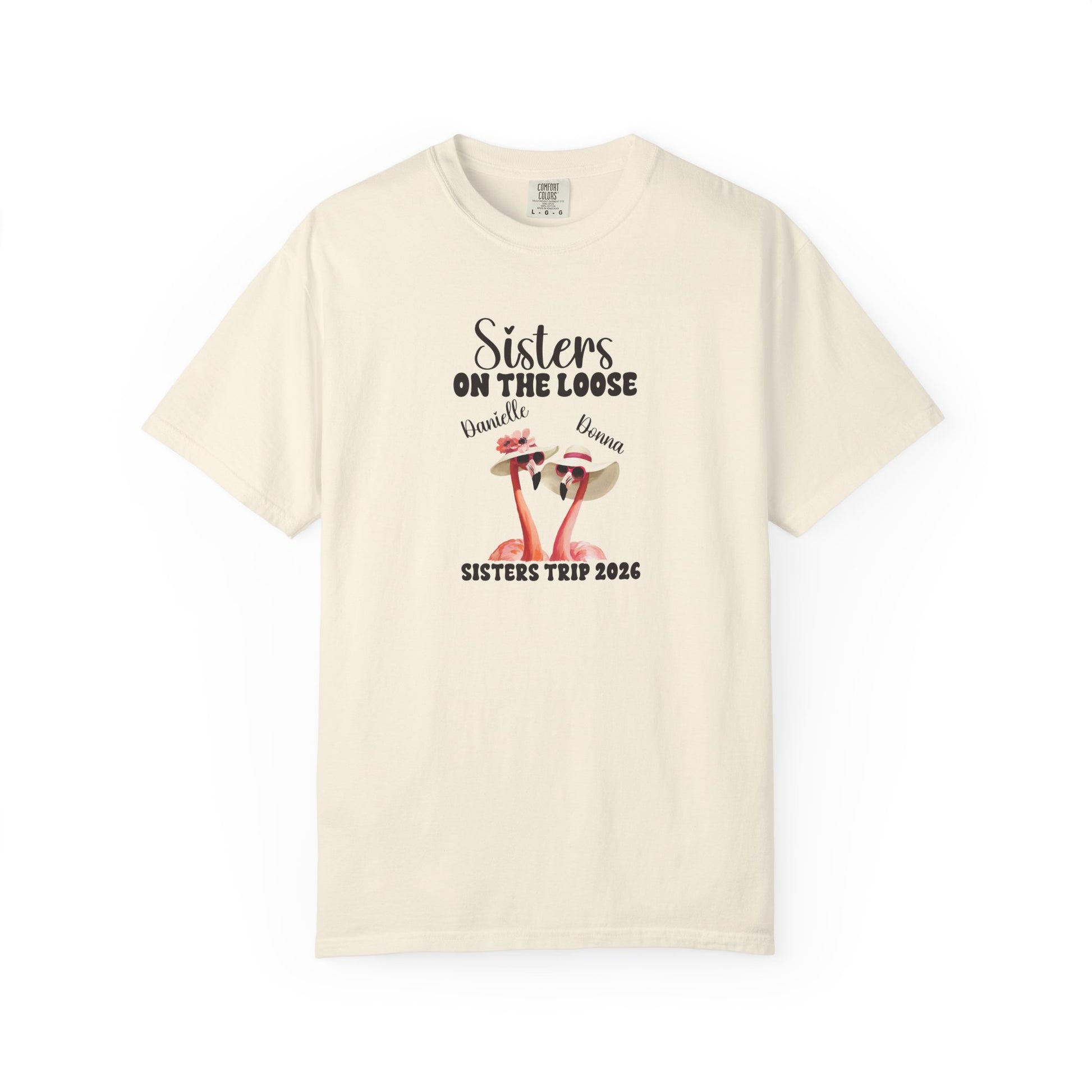 Sisters Trip Personalized Garment-Dyed T-shirt, Family Reunion Tee, Vacation Shirt, Group Activity Top, Girls' Trip Apparel Gift for Sisters